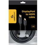 Кабель DisplayPort- HDMI Cablexpert CC-DP-HDMI-6, 20M/19M, экран, 1,8м, черный, пакет