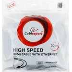 Кабель HDMI Cablexpert CC-HDMI4-30M, 19M/19M, v2.0, медь, позол.контакты, экран, усилитель сигнала, 30м, черный, пакет