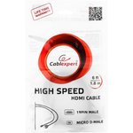 Кабель HDMI-microHDMI Cablexpert CC-HDMID-6, 19M/19M, v2.0, медь, позол.контакты, экран, 1.8м, черный, пакет