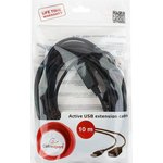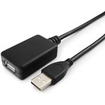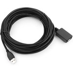 Кабель-удлинитель USB2.0 активный Cablexpert UAE-01-10M, AM/AF, медь двойн.экран, Pro, 10м, черный, блистер