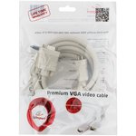 Кабель VGA Premium Cablexpert CC-PPVGA-6, 15M/15M, медь, двойной экран, 2 фер.кольца, 1.8м, серый, пакет