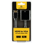 Конвертер HDMI - VGA Cablexpert A-HDMI-VGA-03, 19M/15F, кабель 0.15м, аудиовыход Jack3.5, черный, пакет