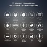 | Функциональные особенности | расчет доли воды; расчет доли жировой ткани; расчет доли мышечной ткани; расчет доли костной ткани; расчет ИМТ(BMI); расчет ПБМ(BMR); расчет уровня белка; расчет биологического возраста; пульс |