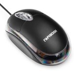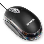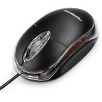 Тип подключения: проводнойИнтерфейс: USBКоличество кнопок: 3Тип сенсора: оптическийРазрешение: 1000 DPIКолесо прокрутки: пластикКабель: 1.15 мПодсветка: естьЦвет: черныйРазмеры: 95х55х32 ммВес: 51 г