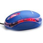 Тип подключения: проводнойИнтерфейс: USBКоличество кнопок: 3Тип сенсора: оптическийРазрешение: 1000 DPIКолесо прокрутки: пластикКабель: 1.15 мПодсветка: естьЦвет: синийРазмеры: 95х55х32 ммВес: 51 г