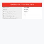 | Потребляемая мощность | 1000 Вт | |